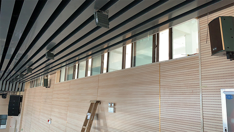 專業擴聲系統簡單來說就是把聲音信號放大,主要由聲源、音頻處理設備、功放及揚聲器系統組成。通過計算會議室的音響場地系數進行設計,保證會議室每個角落的聲場聽覺均勻,音響效果達到語言清晰、無失真、聲場分布均勻。